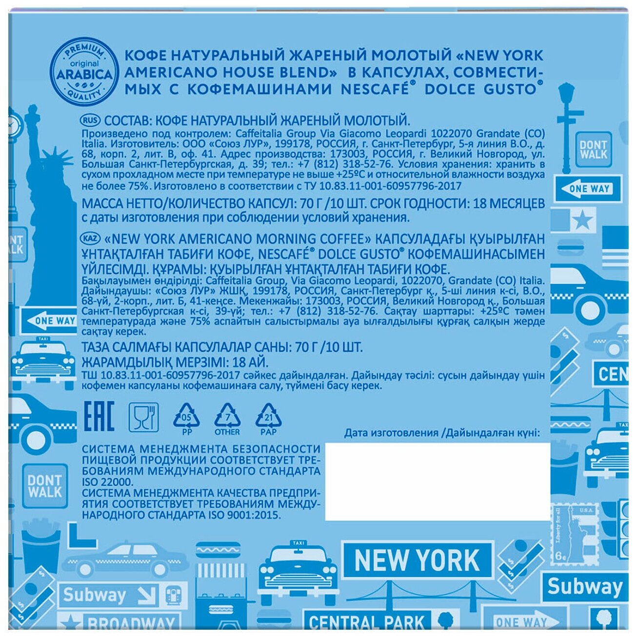 Кофе в капсулах New York Americano House blend, для системы Dolce Gusto (Дольче Густо) информация:
