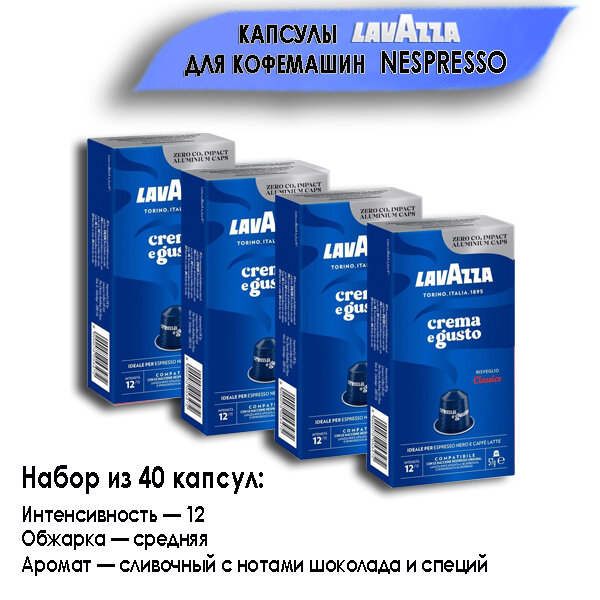 Кофе в капсулах Nespresso Lavazza Crema e Gusto Classico, 4 упаковки по 10 капсул информация: