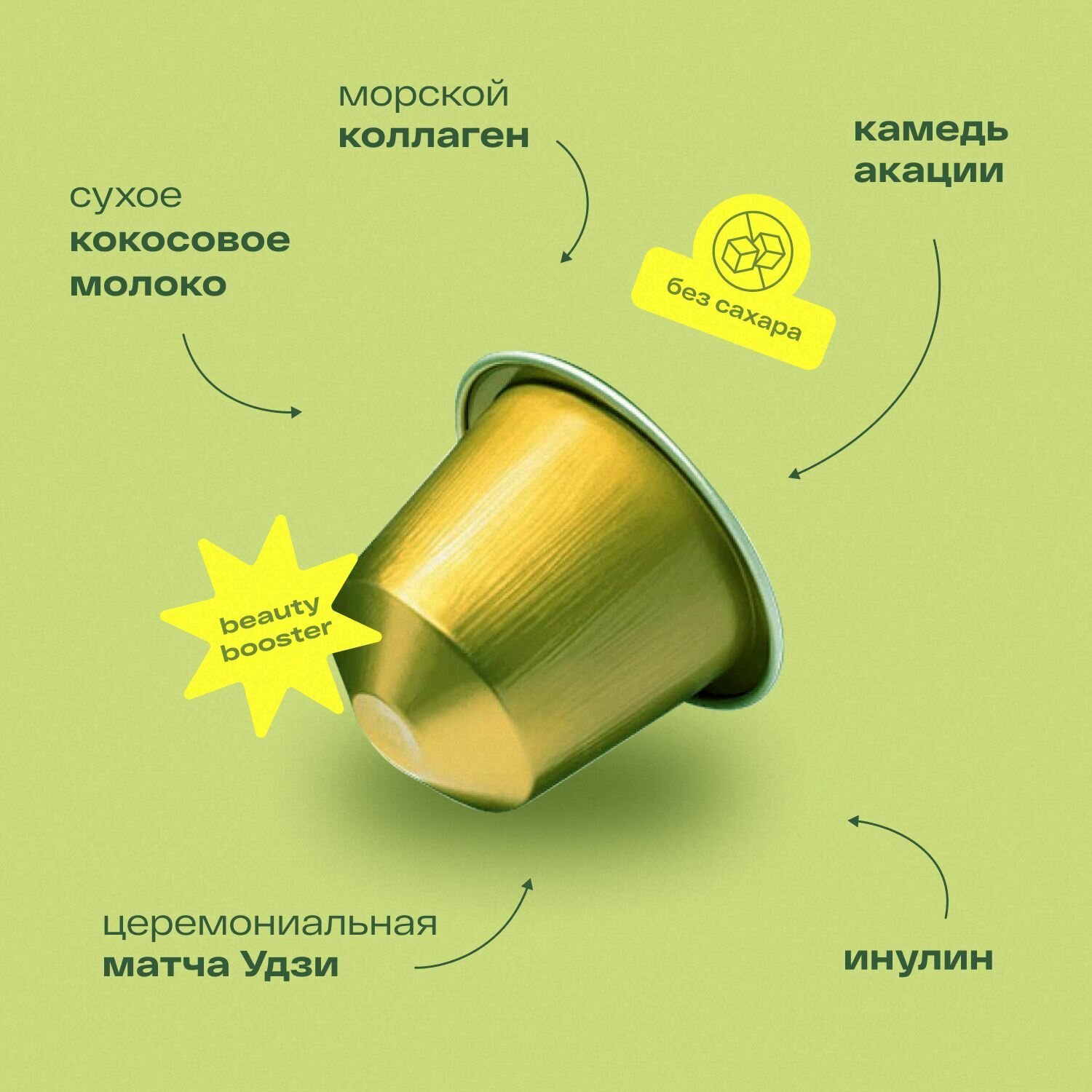 10 цен на Чай матча латте с коллагеном в капсулах /маття с кокосовым молоком для кофемашин Nespresso re-feel