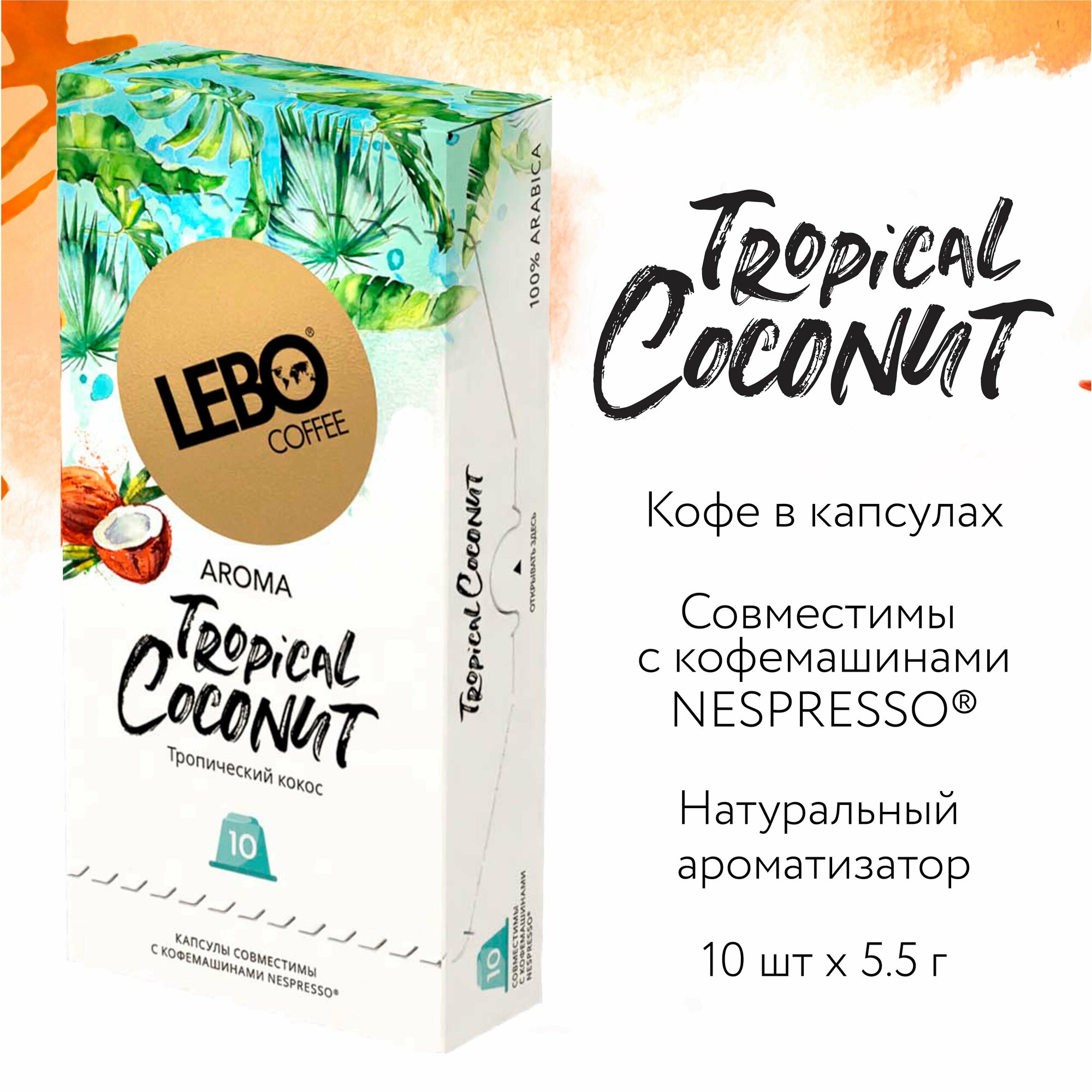 10 цен на Кофе в капсулах Lebo Aroma Tropical Coconut Арабика 100% , 55 г (10 шт), Совместимы с кофемашинами Nespresso