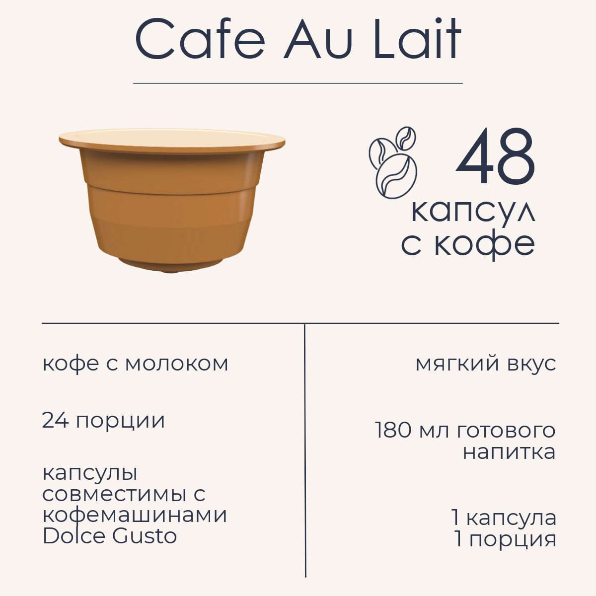 Кофе в капсулах Dolce Gusto формат "Cafe au lait" 48 шт. HOME BARISTA информация: