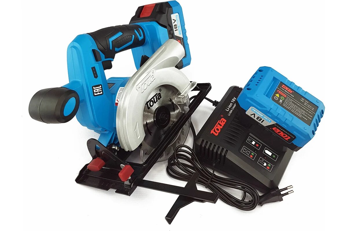 Циркулярная пила TOUA DBLC180-A аккумуляторная 18v (1АКБ+ЗУ) с отрезным диском TOUA 165мм