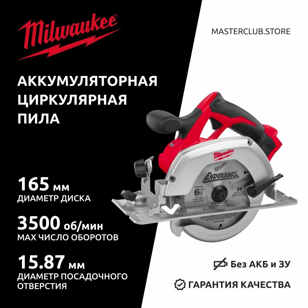 Аккуммуляторная циркулярная пила Milwaukee HD18 CS-0, 18 В, 165 мм, 3500 об/мин, без АКБ и ЗУ, 4933419134 информация: