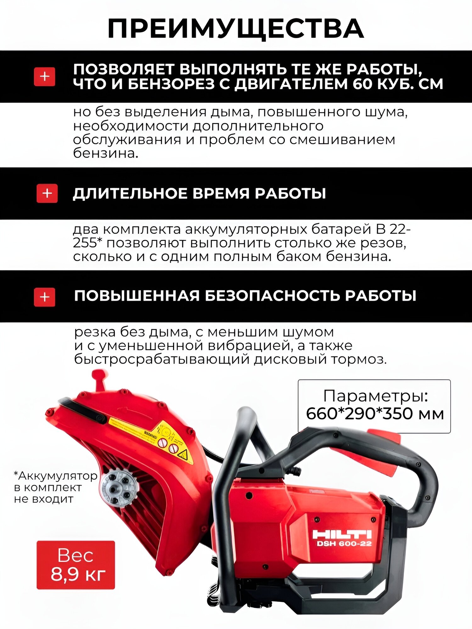 Аккумуляторная отрезная пила HILTI DSH 600-22 2251369 информация: