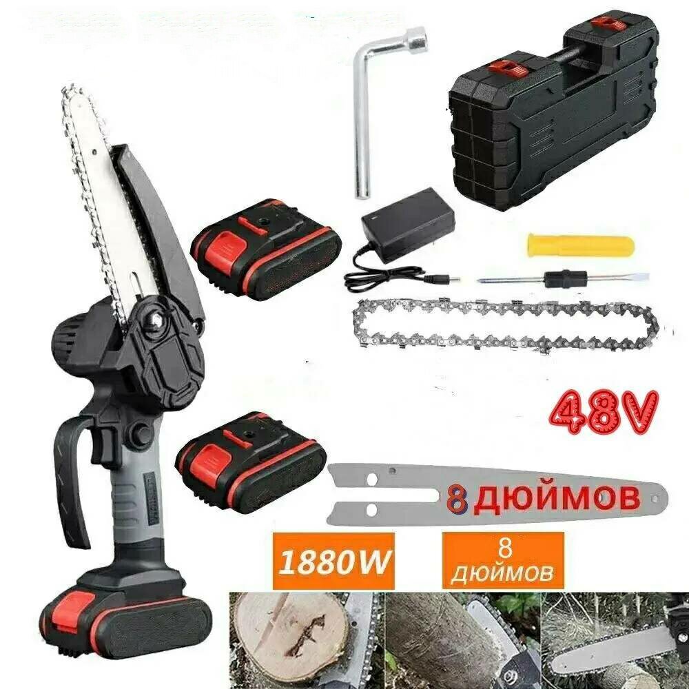 Пила аккумуляторная "цепная" электропила (8 дюймов) / 48V пила аккумуляторная цепная, 2 батареи, чемоданчик, защитный кожух