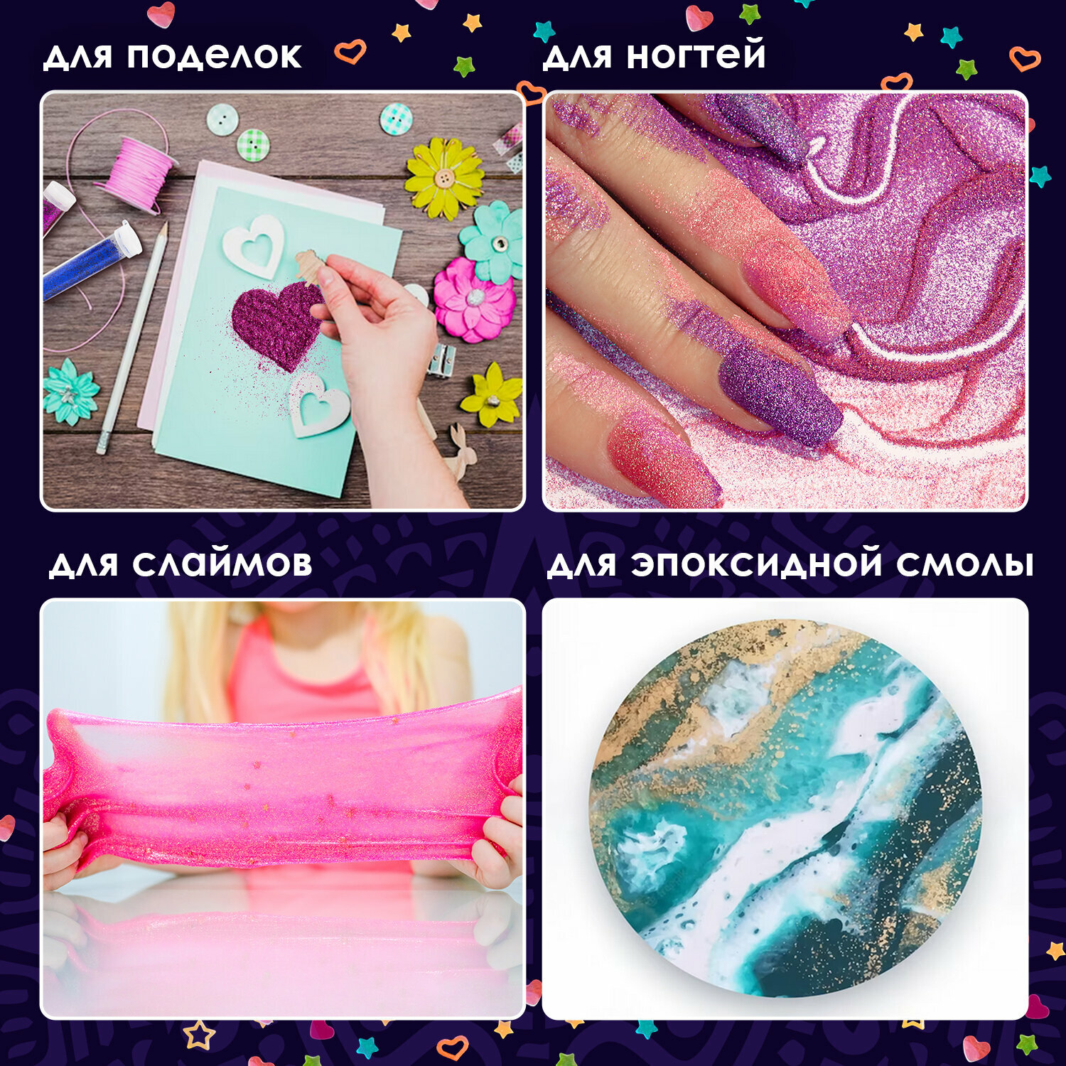 Отзывы на Блестки для декора и декорирования (глиттер) для творчества и рукоделия, поделок, Фигурные, Остров Сокровищ, Неон, диспенсер, 6 цветов по 9 г, 662226