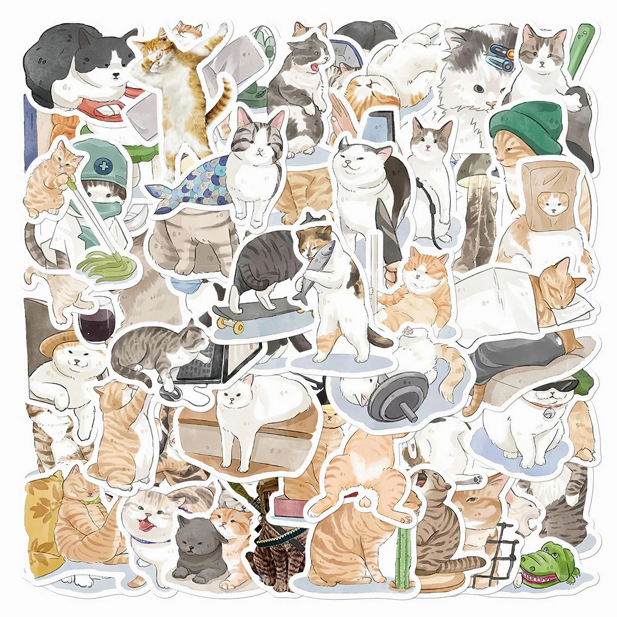 Стикеры Котики - 50 штук. Наклейки виниловые на ноутбук, телефон. Стикерпак для скрапбукинга с котами, мем 209 ₽