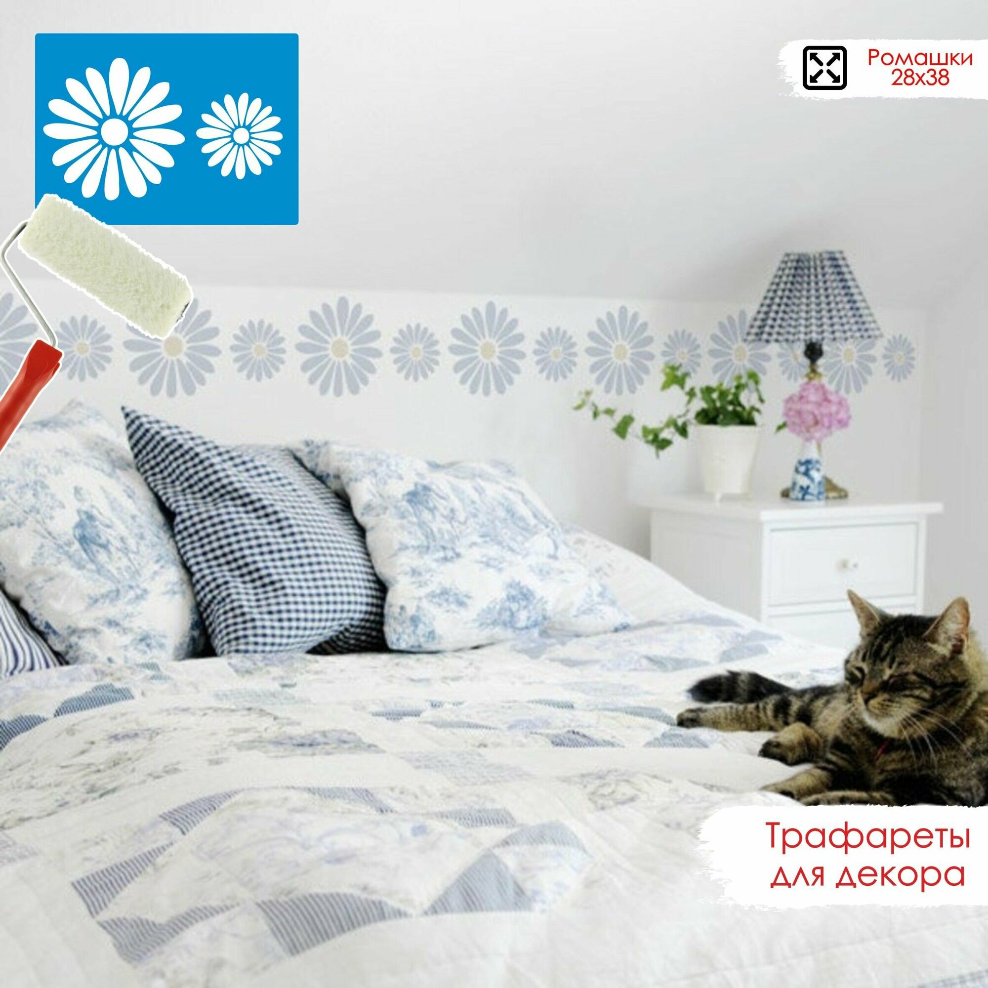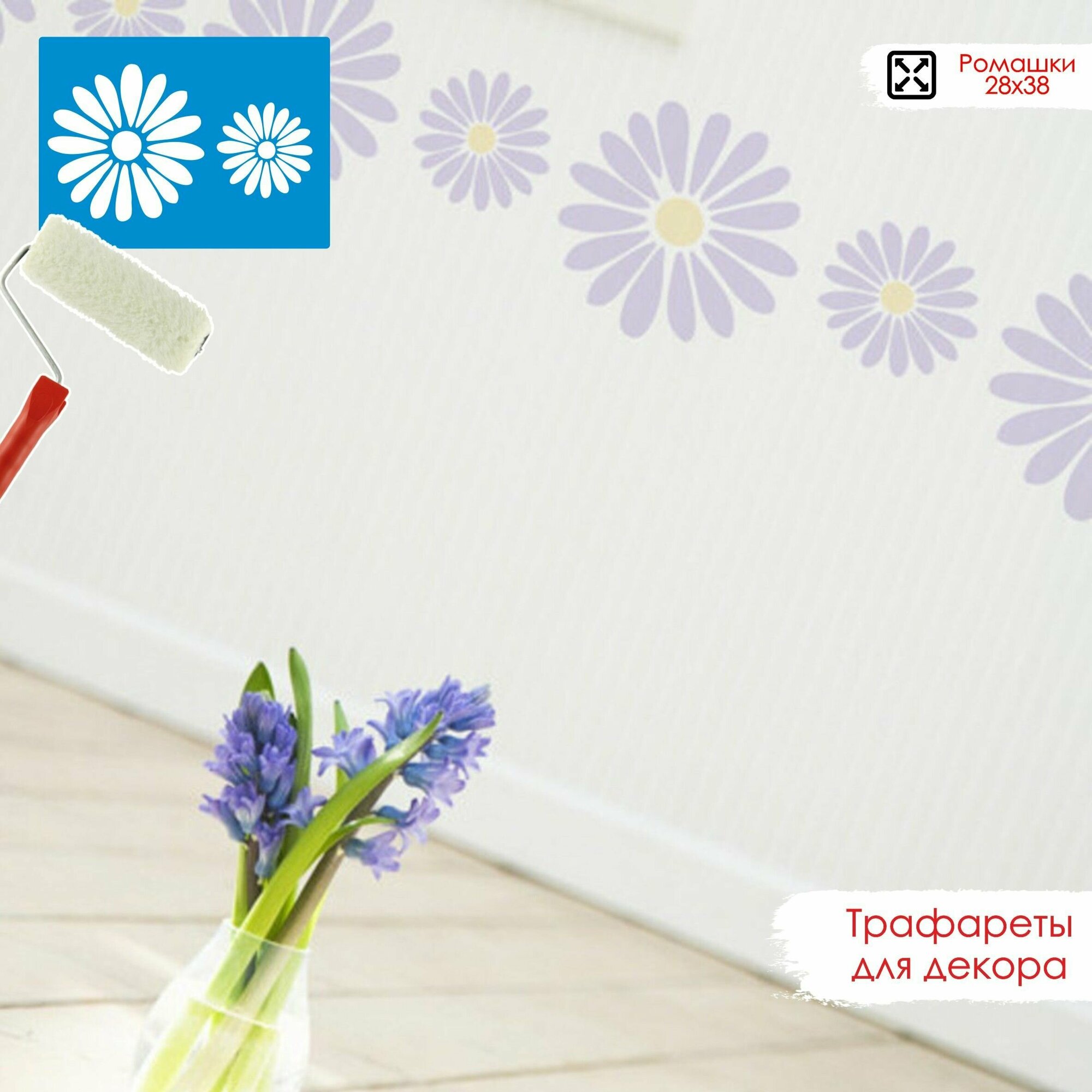 Отзывы на Трафарет пластиковый для декора и творчества, многоразовый. Бордюр - Ромашки Трафарет для интерьера 28х58 см. Пластик 0,5 мм.