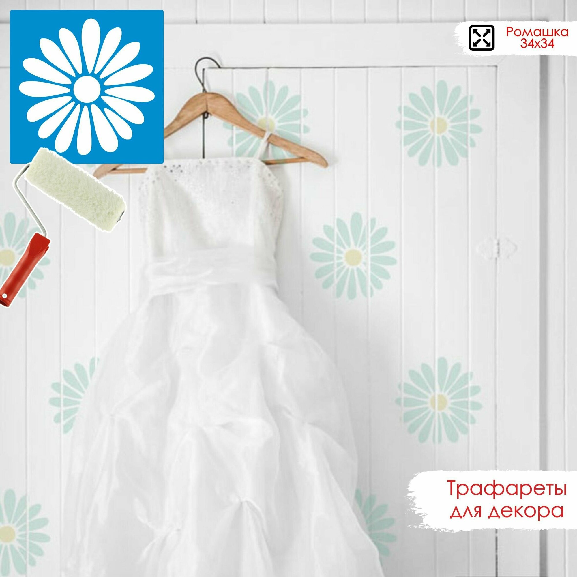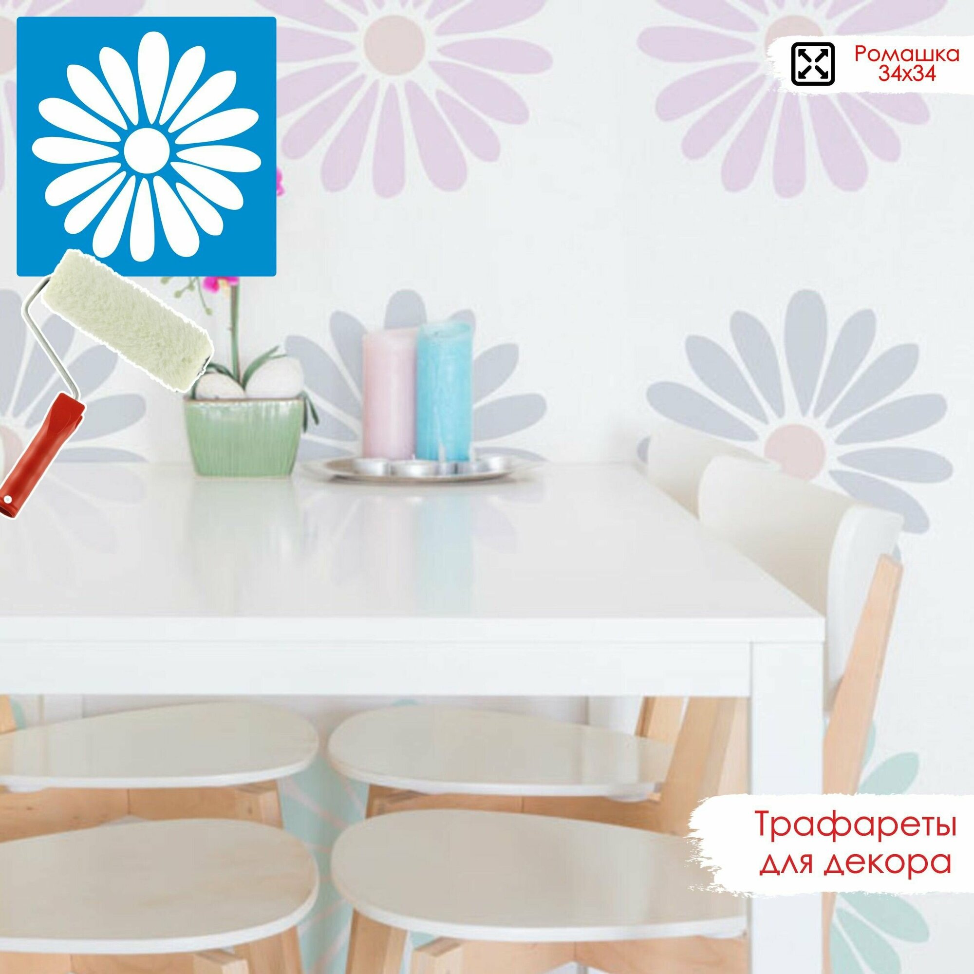 10 цен на Трафарет для стен и пола - Ромашка Трафарет для интерьера, для дизайна и творчества, пластиковый, многоразовый. 34х34 см. Пластик 0,5 мм.