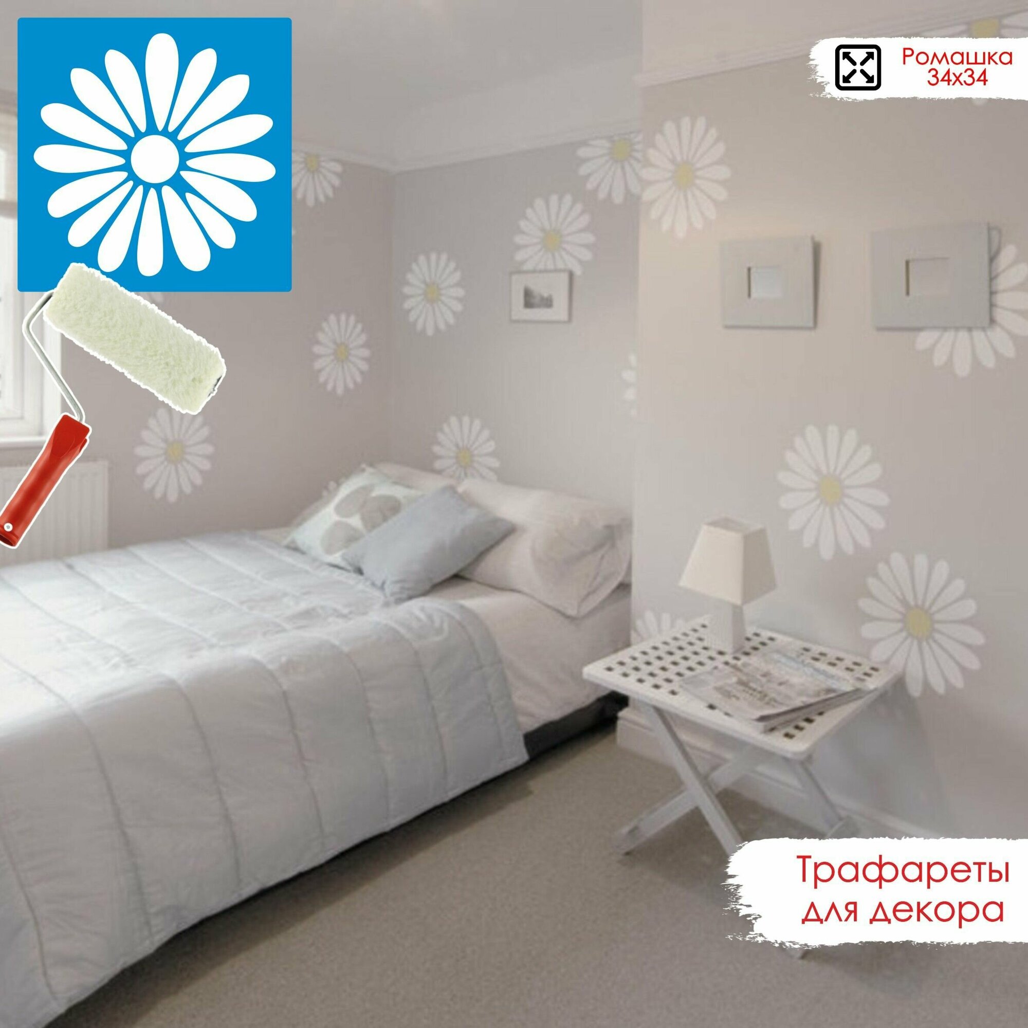 Трафарет для стен и пола - Ромашка Трафарет для интерьера, для дизайна и творчества, пластиковый, многоразовый. 34х34 см. Пластик 0,5 мм. информация: