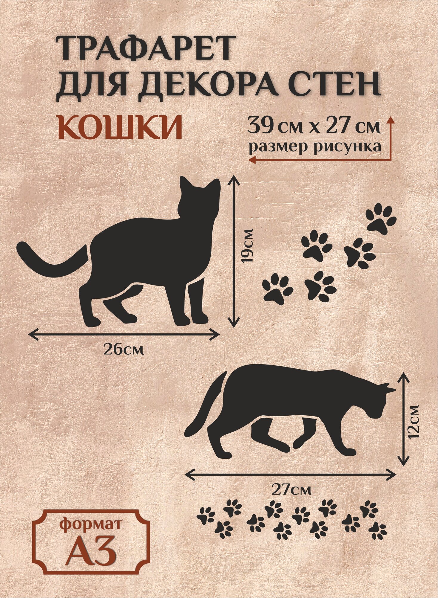 Трафарет для стен и декора прозрачный А3 (42х29,7см) кошки информация: