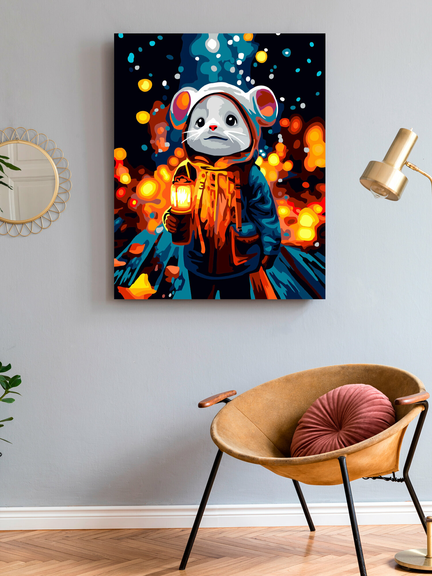 Картина по номерам на холсте 40х50 см Мышонок с фонариком информация:
