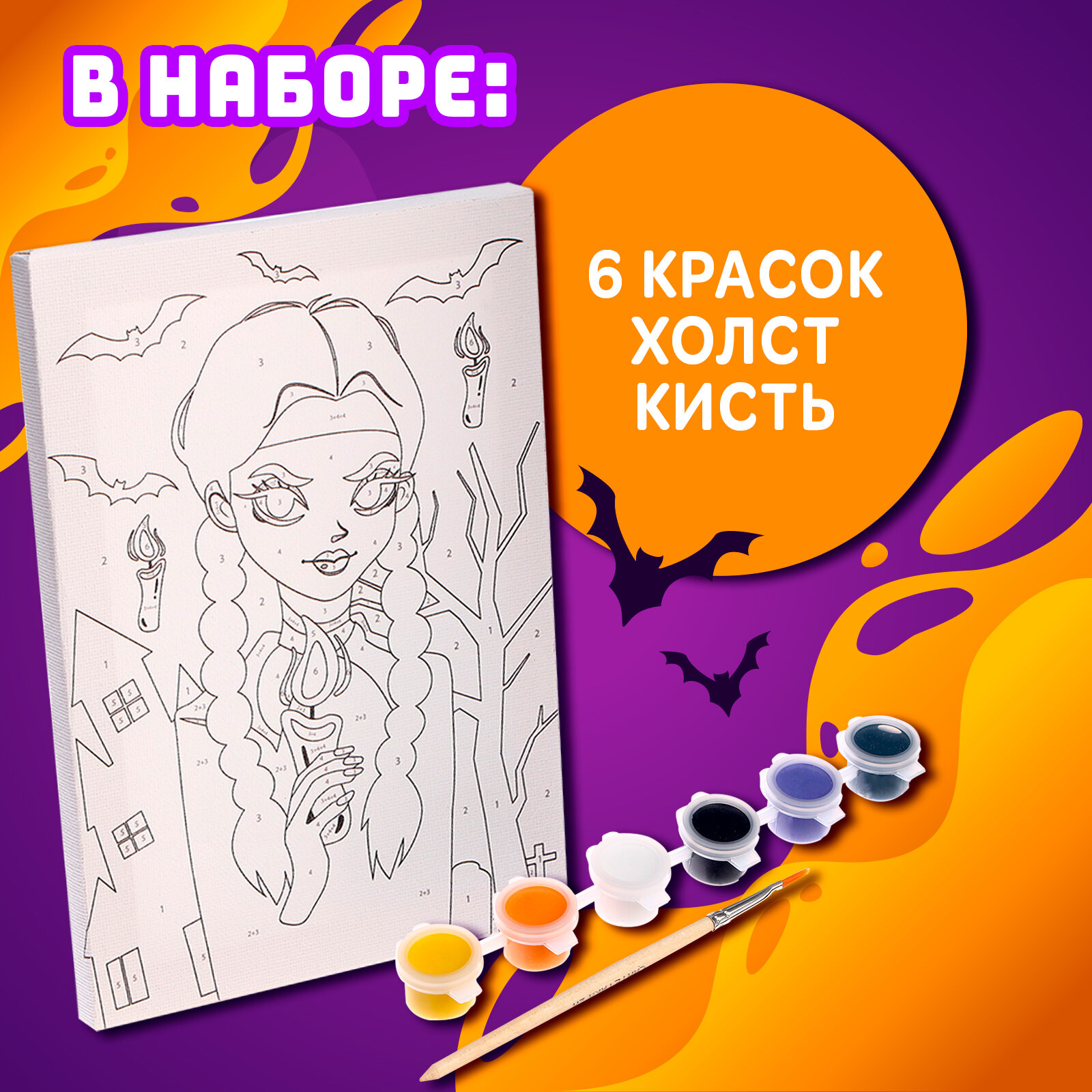10 цен на Картина по номерам "Девочка с косичками", "Семейка Аддамс", Уенздей, размер: 21х15 см, для детей