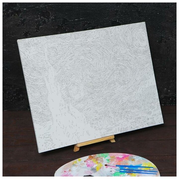 Картина по номерам на холсте с подрамником "Звёздная ночь" Винсент ван Гог, размер: 40*50 см., для детей информация: