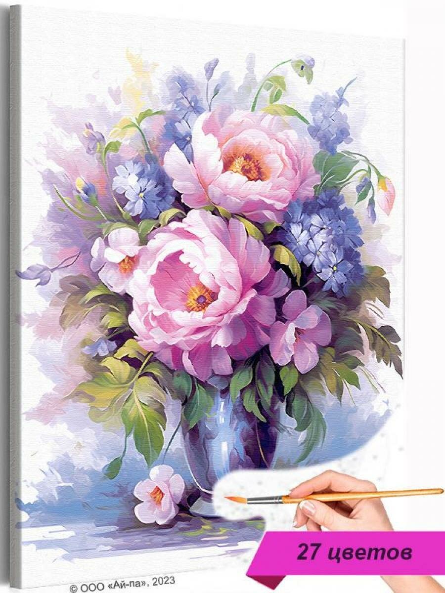 10 цен на Пионы и сирень в вазе Цветы Букет Натюрморт Маме Интерьерная Раскраска картина по номерам на холсте 40х50