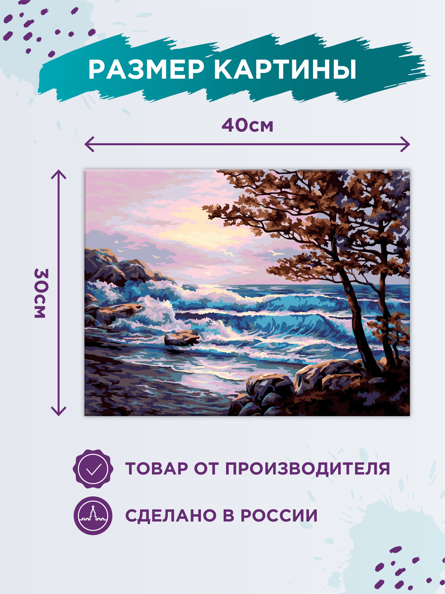 | Размер полотна | 20 х 30 см, 30 х 20 см, 40 х 30 см, 50 х 40 см |