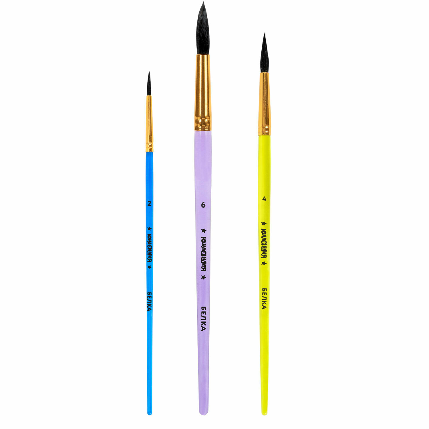 Кисти для рисования в школу набор 3 штуки, кисточки круглые № 2 4 6, белка, Юнландия, 201071 информация:
