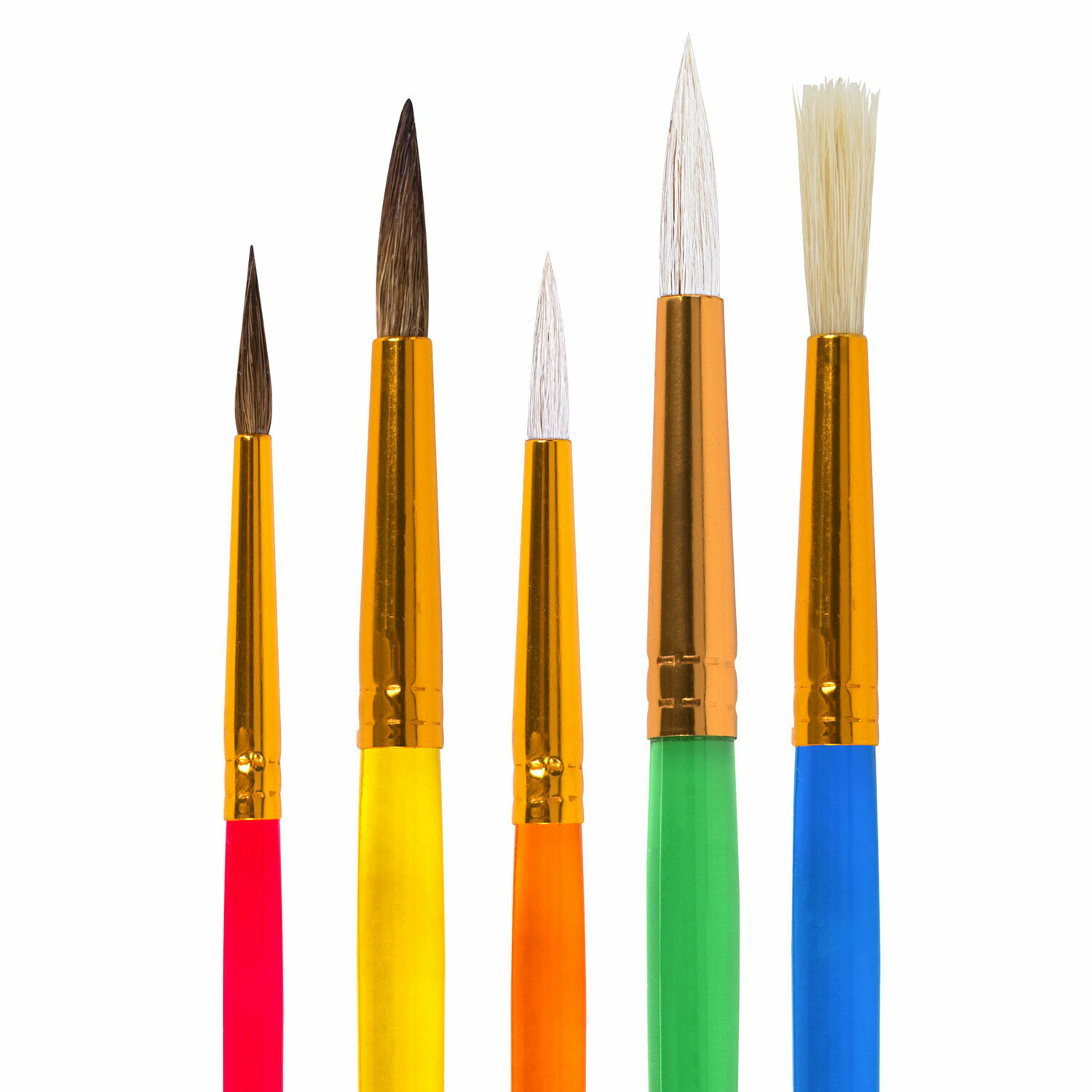 10 цен на Кисти для рисования в школу набор 5 штук, кисточки круглые и плоские, коза, щетина, пони, Юнландия, 201079