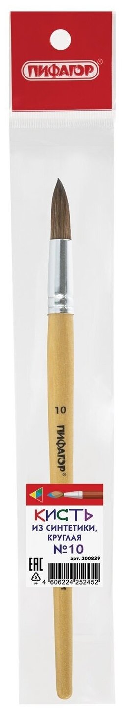 Кисть / кисточка для рисования Пифагор, из ворса пони, круглая, № 10, 200839 информация: