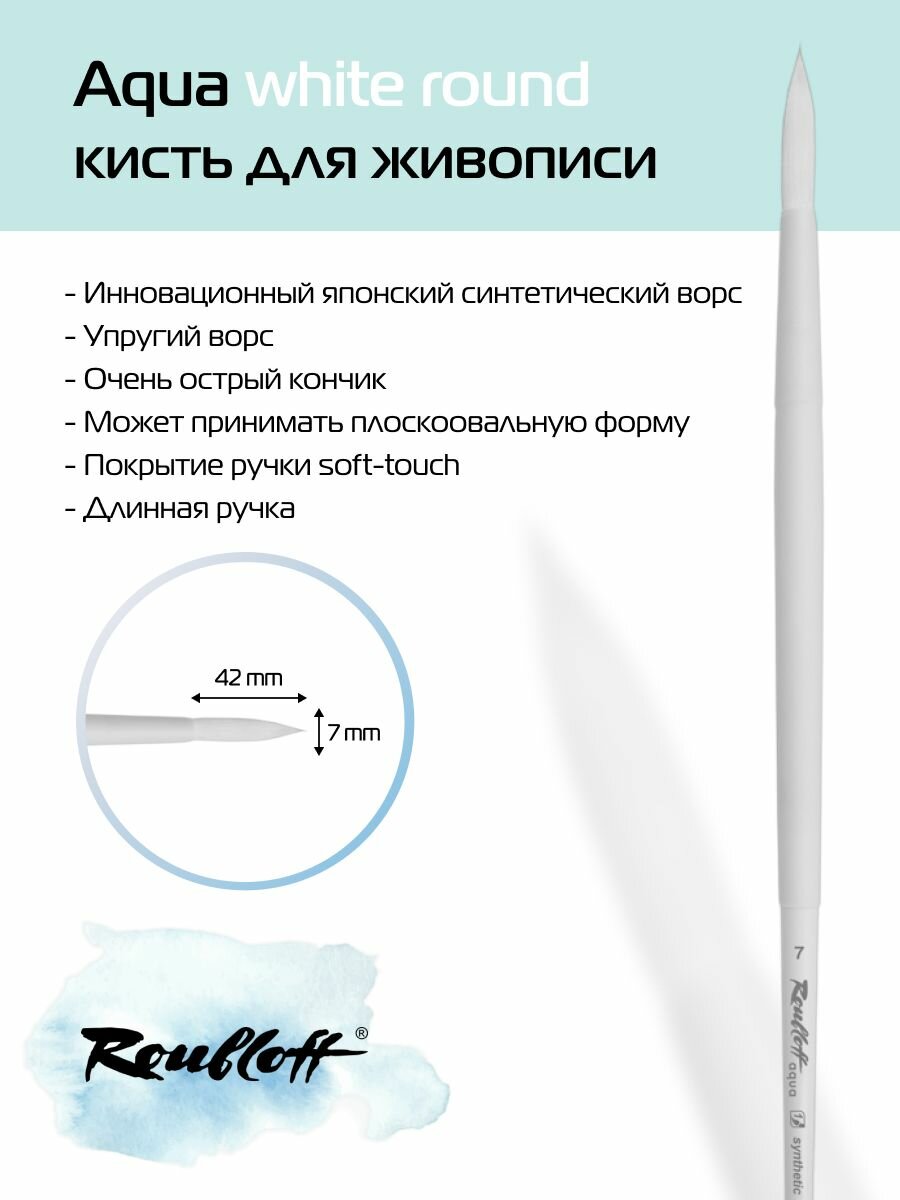 Roubloff Кисть Aqua White Round №7 круглая из японской синтетики для акварели, длинная ручка информация: