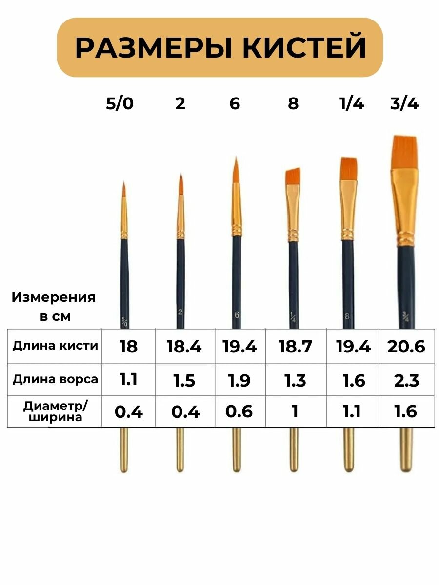 Кисти художественные для рисования (6 штук) информация: