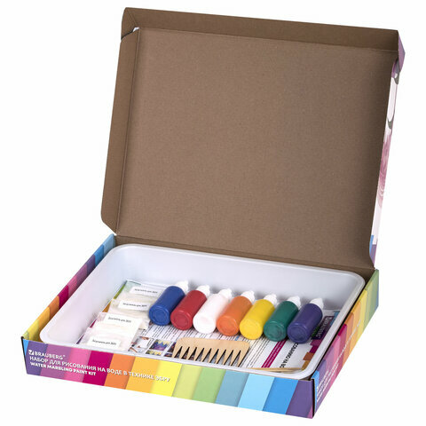 Эбру рисование на воде набор для творчества для девочек и мальчиков 7 цветов по 20 мл, лоток А4, BRAUBERG HOBBY, 665354 766 ₽