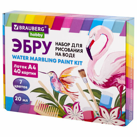 Эбру набор для рисования на воде 7 цв*20 мл (40 картин), лоток А4, BRAUBERG HOBBY, 665354