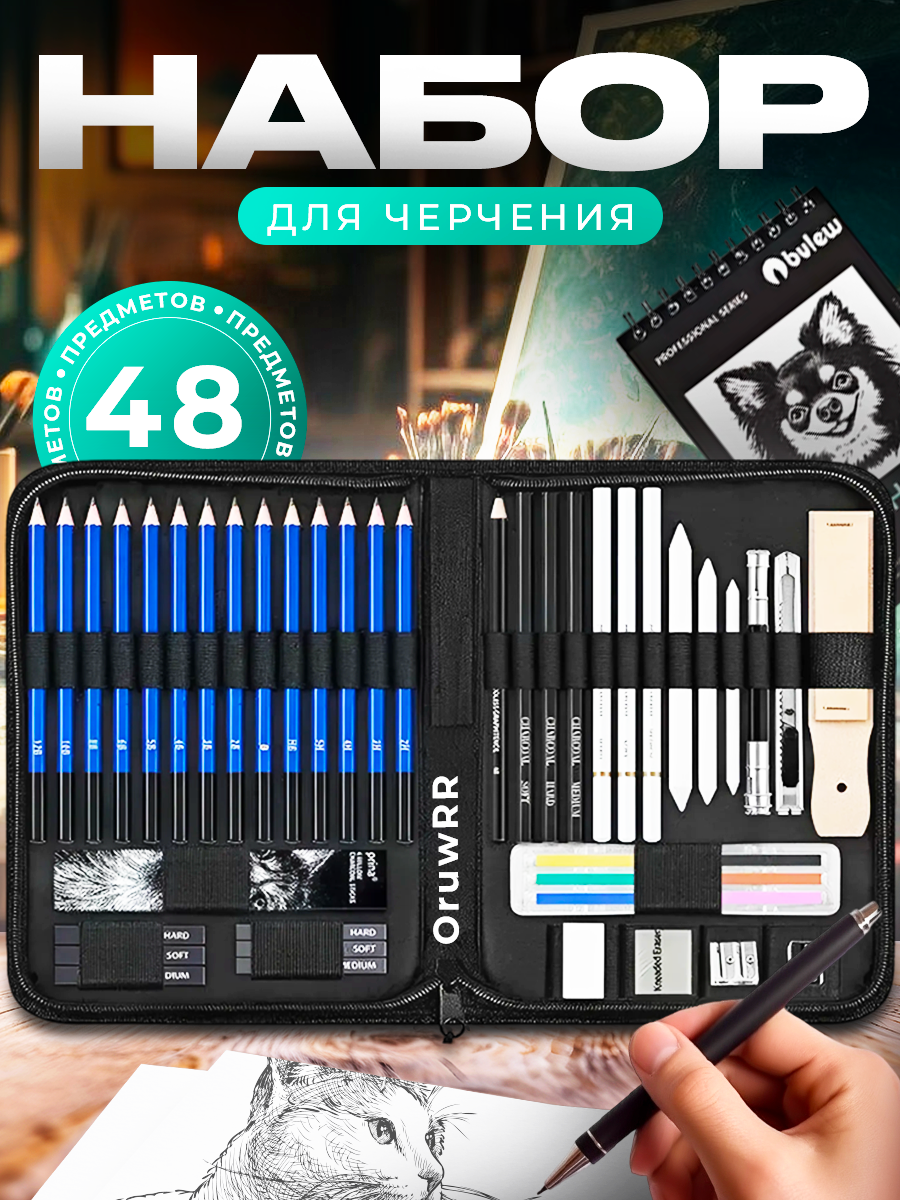 10 цен на Художественный набор для рисования, черчения, набросков. с эскизным блокнотом.