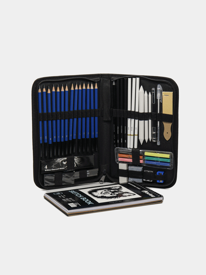 Художественный набор для рисования, черчения, набросков. с эскизным блокнотом. информация: