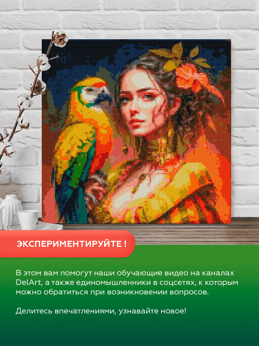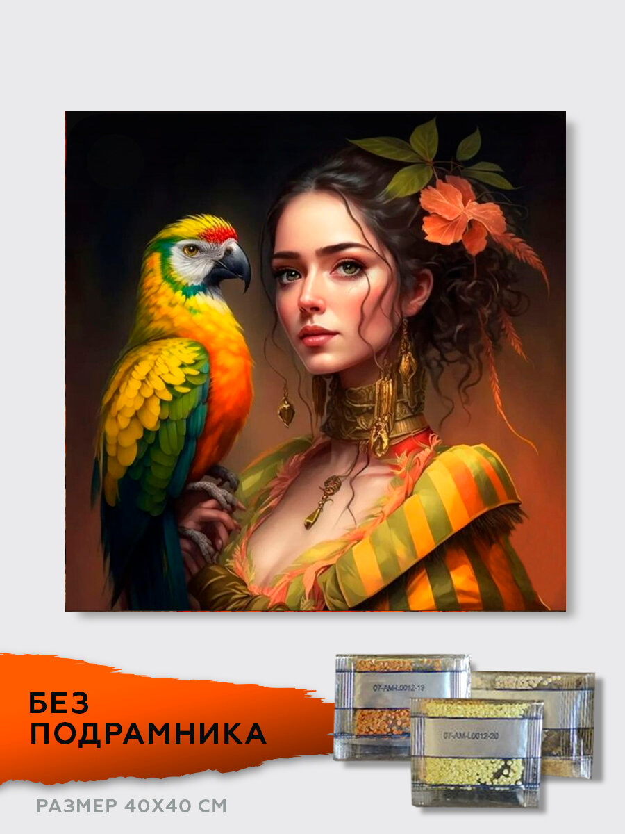 10 цен на Алмазная мозаика без подрамника 40х40 см Дама с попугаем. Алмазная вышивка. Картина стразами. Набор для творчества для взрослых и детей