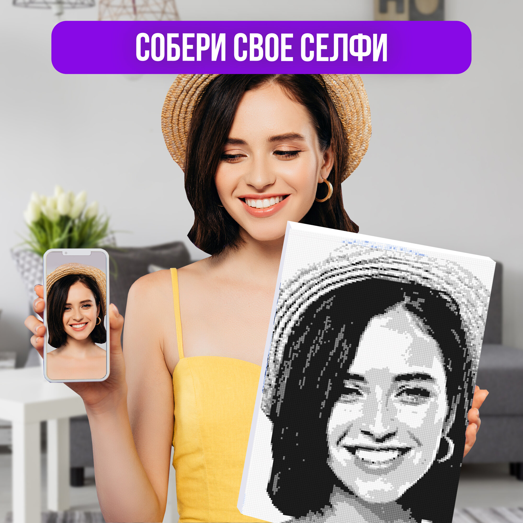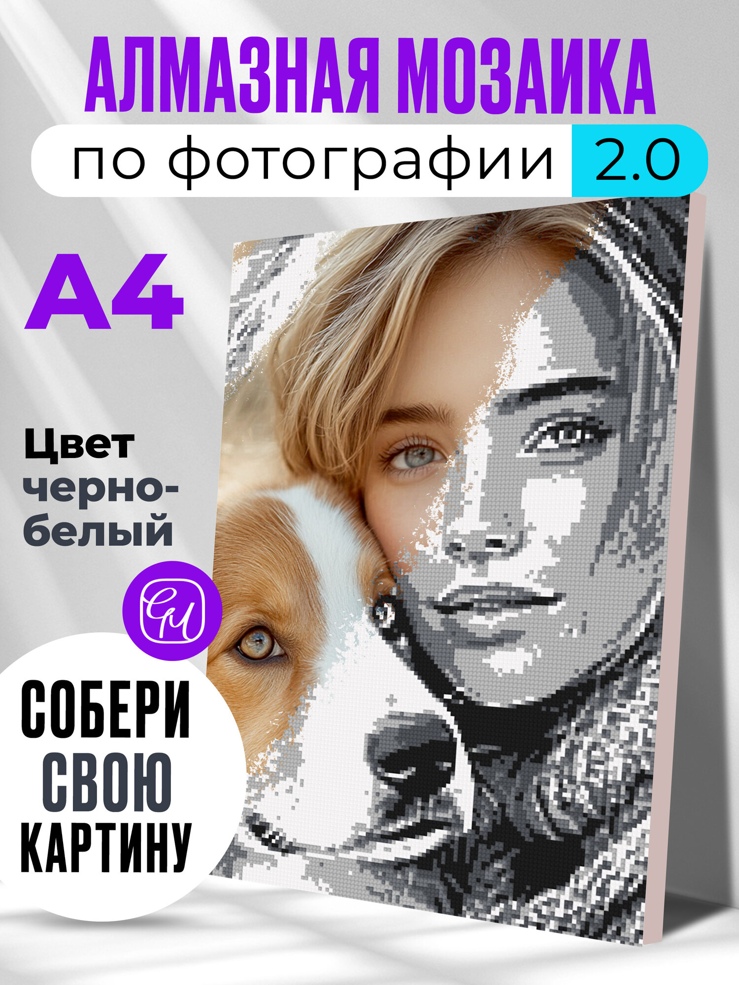 Отзывы на Алмазная мозаика по фотографии или картинке на подрамнике А4 Черно-белая