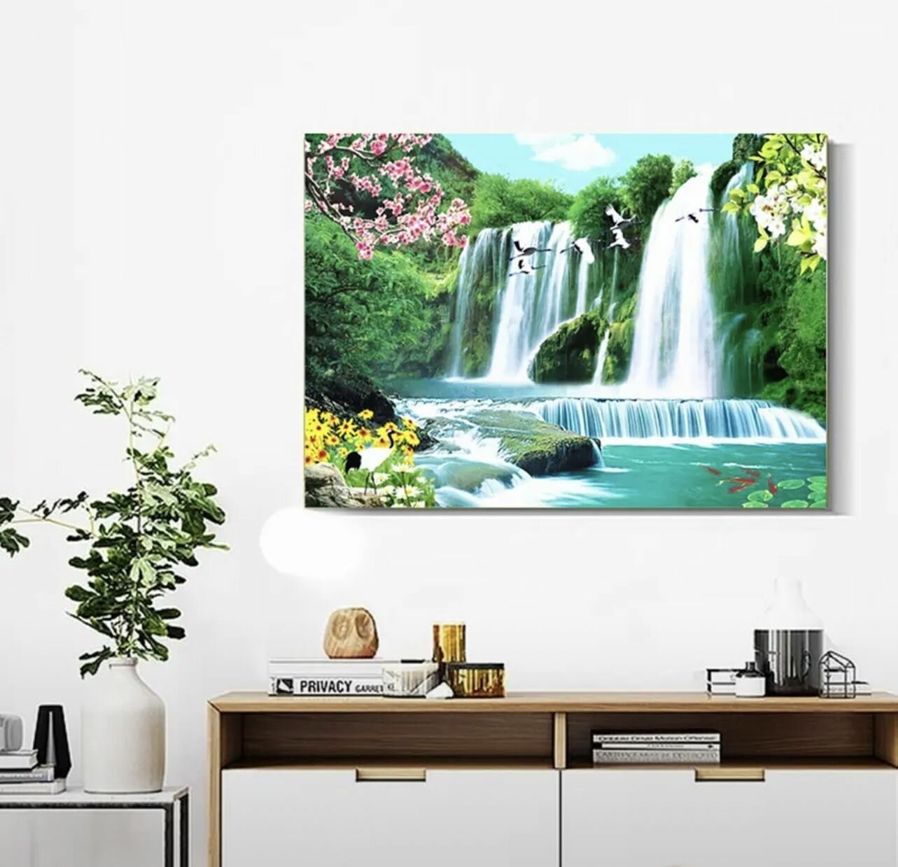 10 цен на Алмазная мозаика на холсте"Райский водопад" 50х40 см полная выкладка круглые стразы Мадагаскария