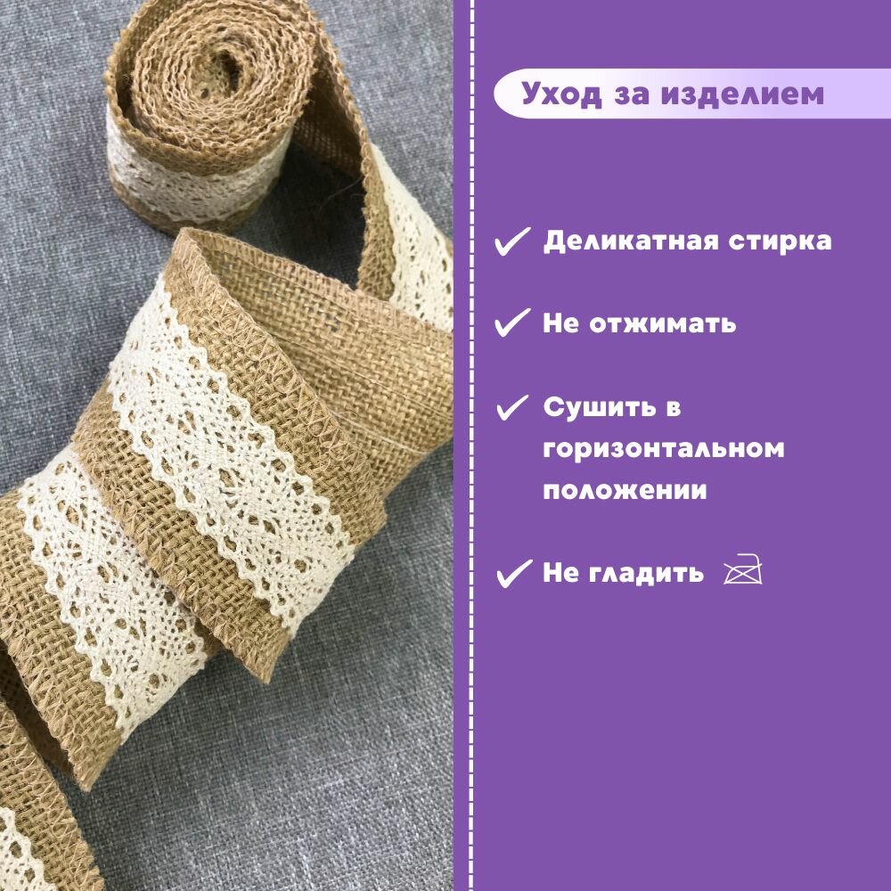 Отзывы на Лента декоративная из джута/лента из мешковины/ тесьма из мешковина с кружевом, ширина 50 мм, длина 2 метра