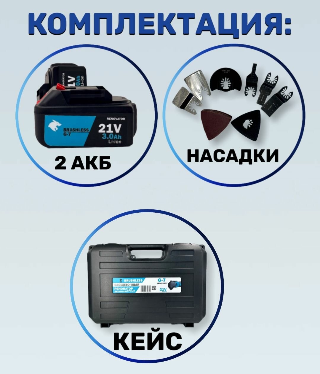 Бесщеточный аккумуляторный реноватор, многофункциональный, 2 АКБ 21 V, 20000 об/мин, 6 режимов скорости, FANG TOOLS информация: