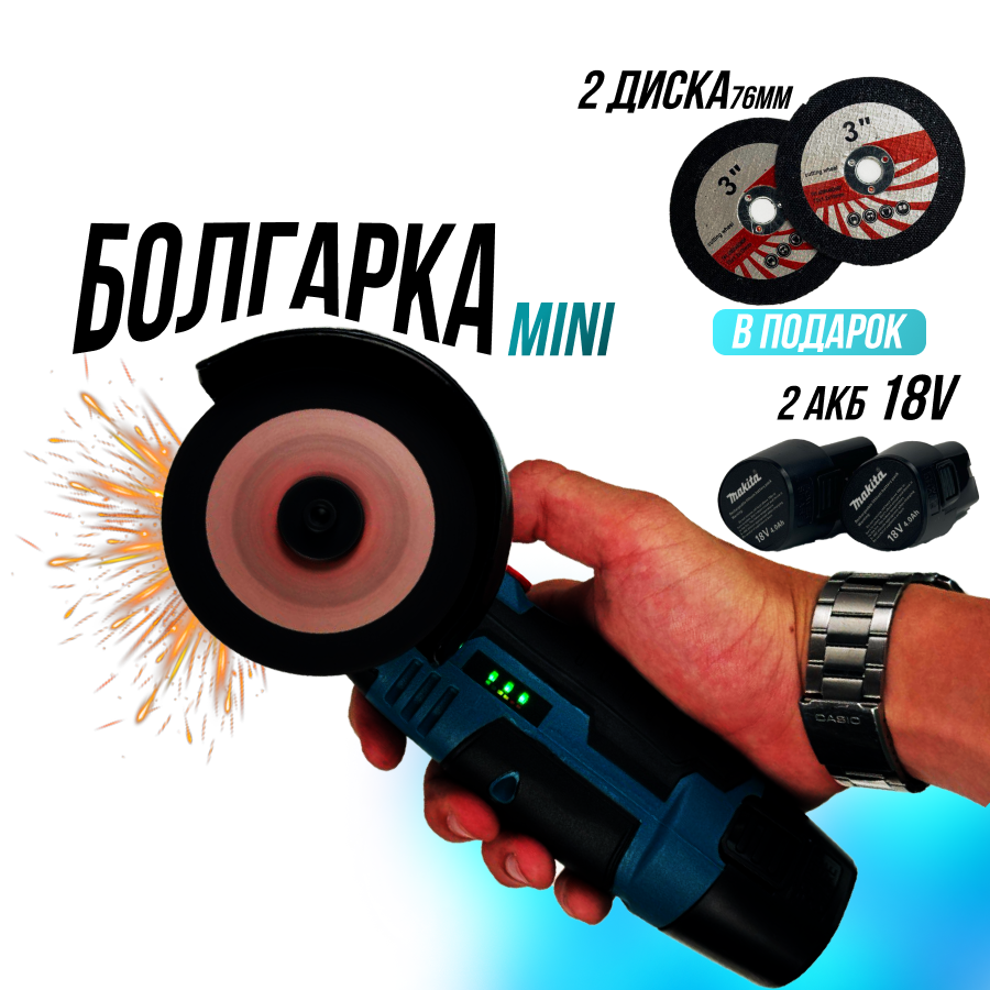Мини УШМ болгарка аккумуляторная 18V, 2 АКБ информация: