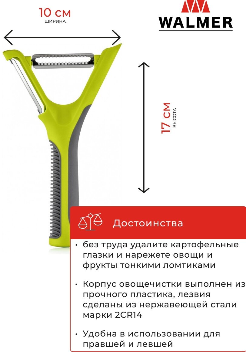 Овощечистка ручная для овощей и фруктов Walmer Vegan 17 см цвет зеленый информация: