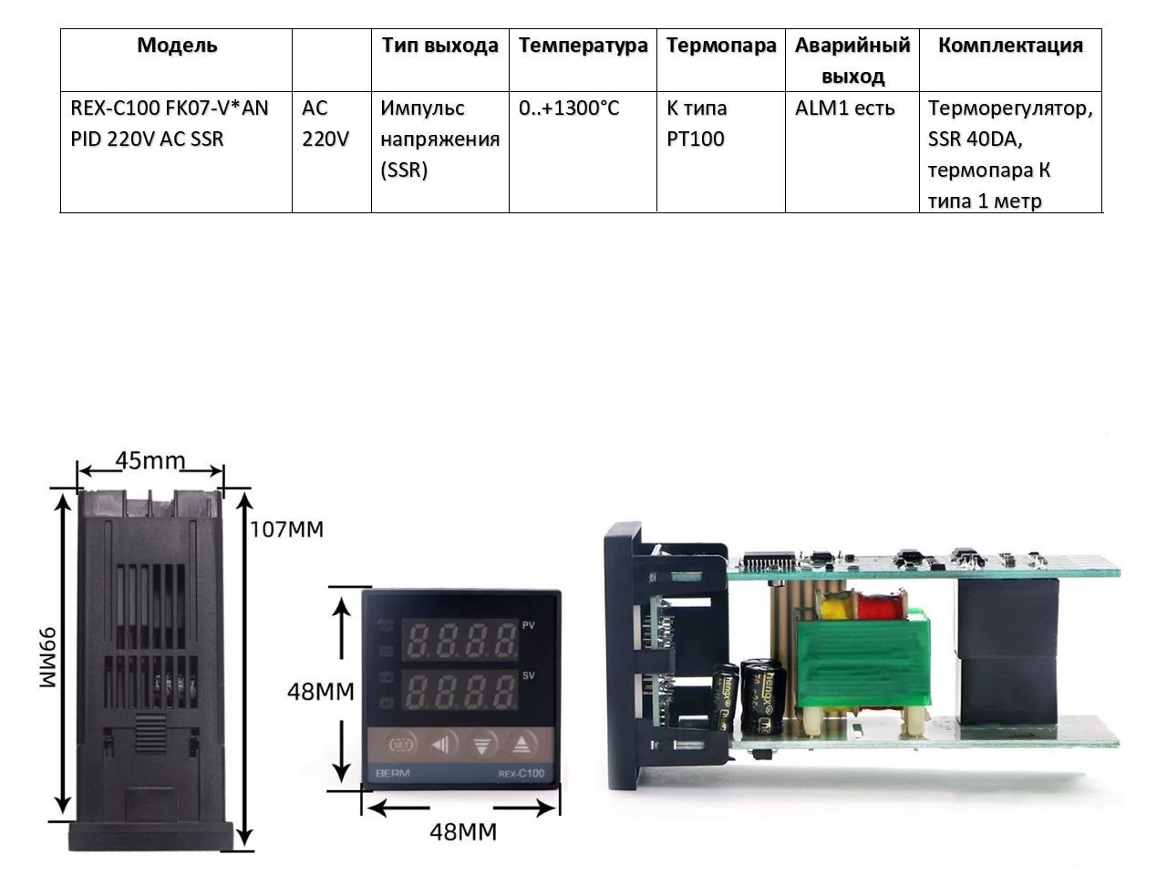 Отзывы на PID регулятор REX-C100 FK07-V*AN ПИД регулятор 220V AC SSR +реле +термопара(датчик)