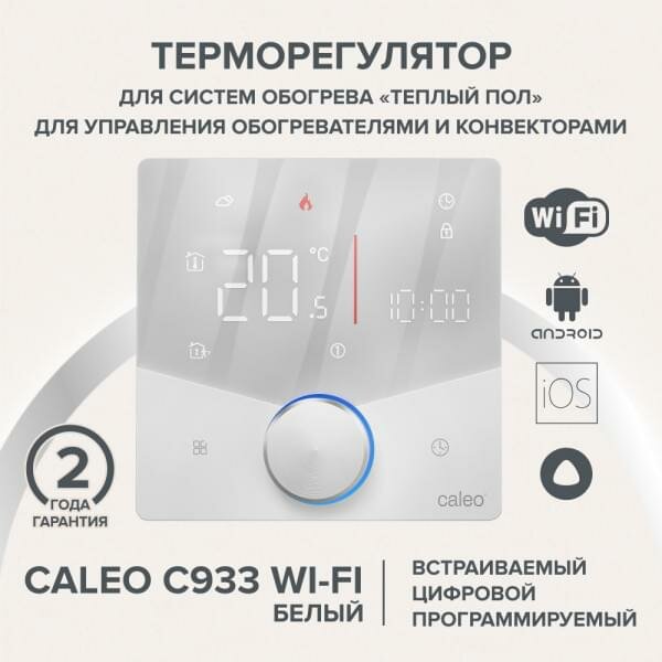 Wi-Fi терморегулятор CALEO C933 Wi-Fi Белый для теплого пола информация: