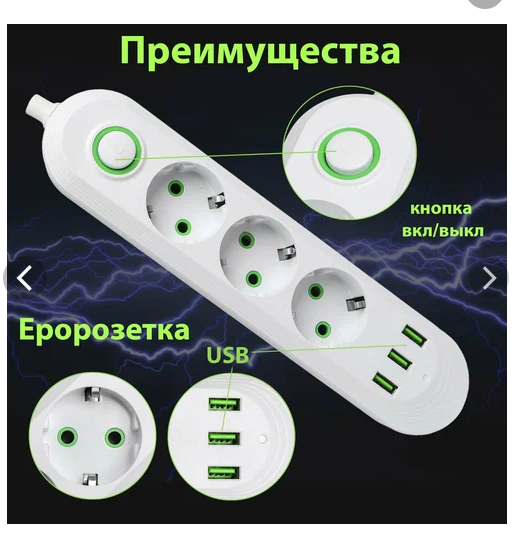 Отзывы на Сетевой фильтр с 3 розетками и 3 USB-портами, 5 метров, 10A, белый цвет.