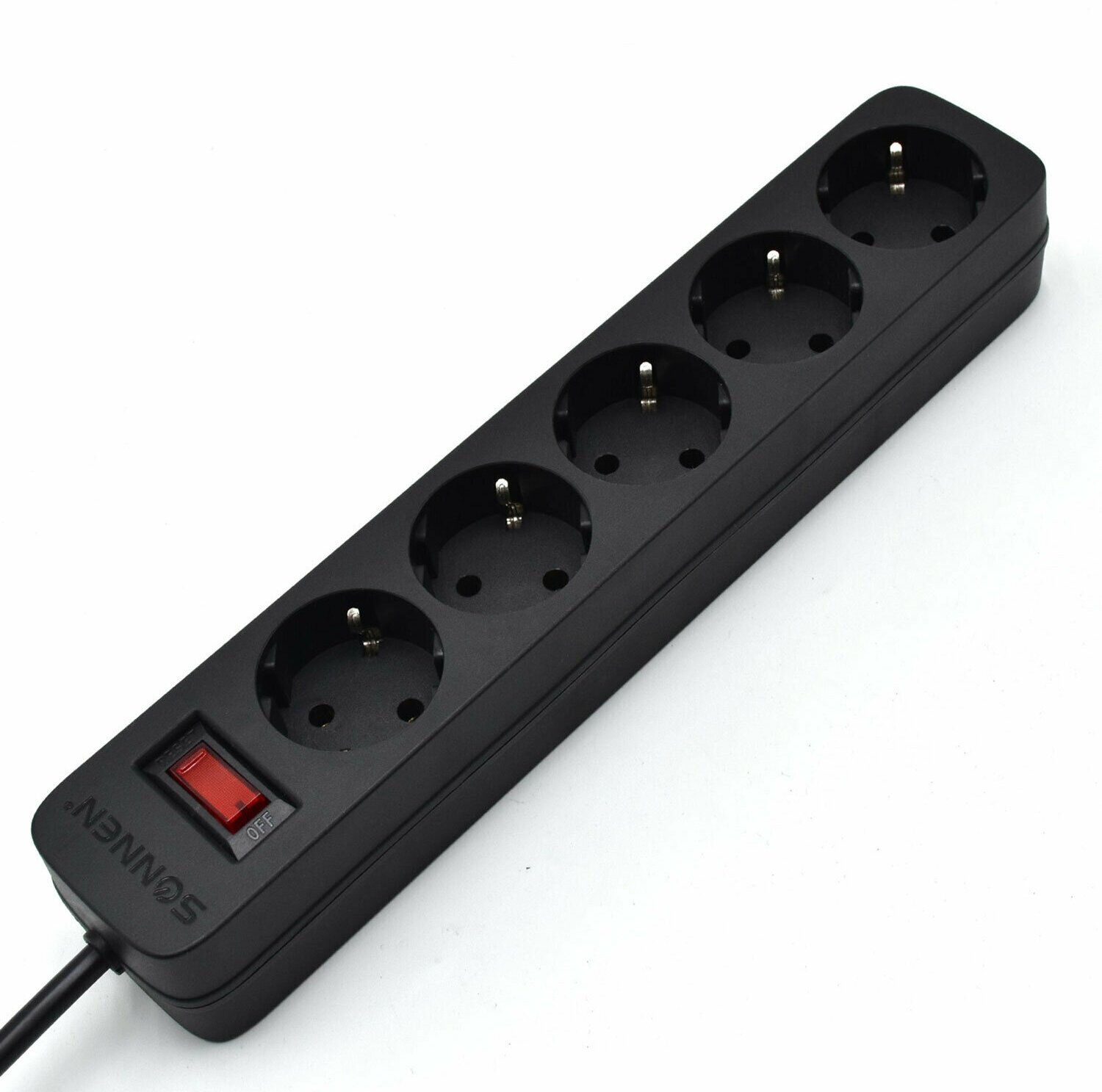 Отзывы на Удлинитель-переноска сетевой фильтр Sonnen Spb-185, 5 розеток с заземлением, выключатель, 10 А, 1,8 м, черный, 513656