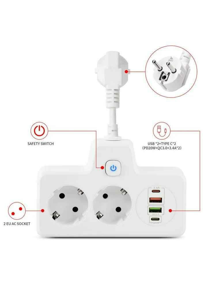 10 цен на Сетевой фильтр с предохранителем, 2 розетки + USB Type C от GadFamily_Shop