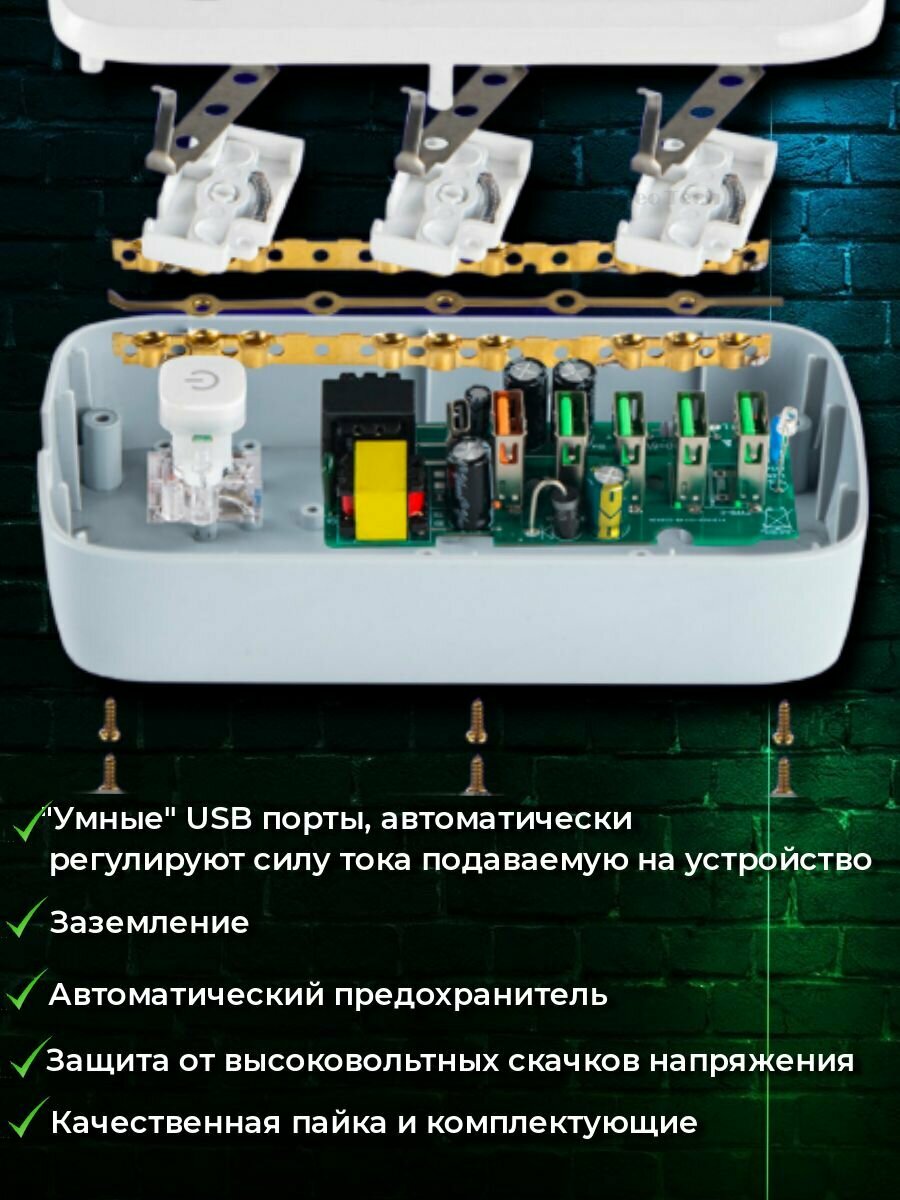 Удлинитель-сетевой фильтр Neo Tech с выключателем и световой индикацией, 5 портов USB 1 порт Type-C информация: