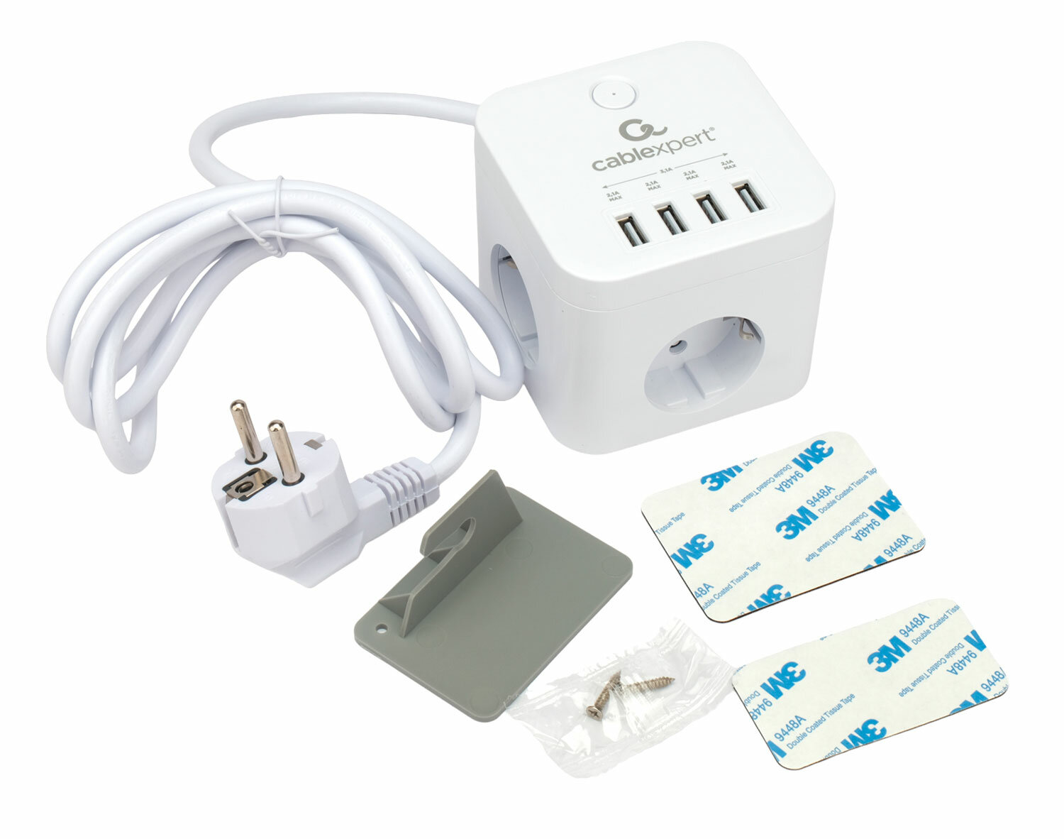 Сетевой фильтр Gembird Cablexpert Cube 3 Sockets 4хUSB 1.5m White CUBE-3-U4-W-1.5