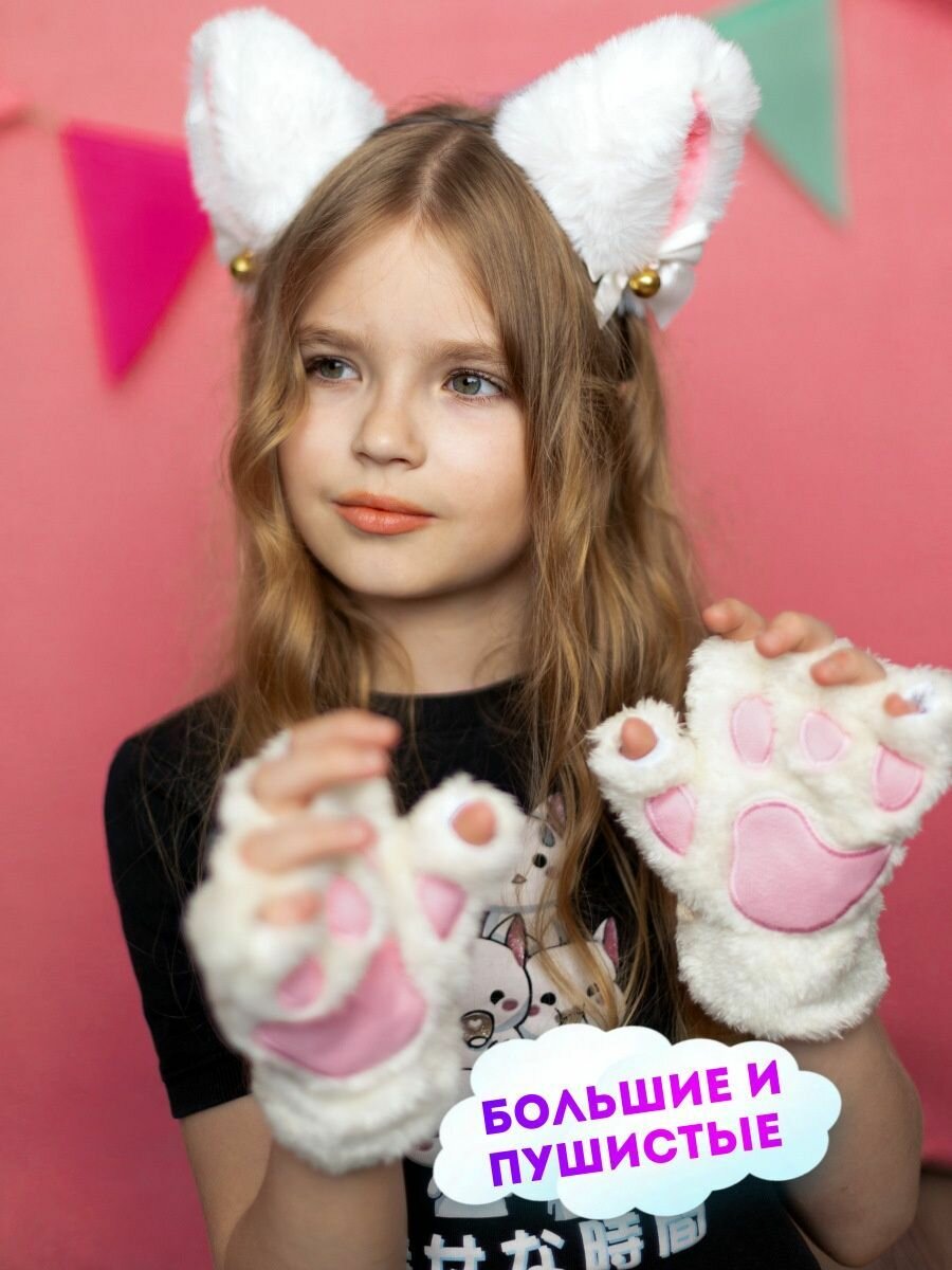 10 цен на Перчатки лапки митенки и ободок ушки кошки для квадробики