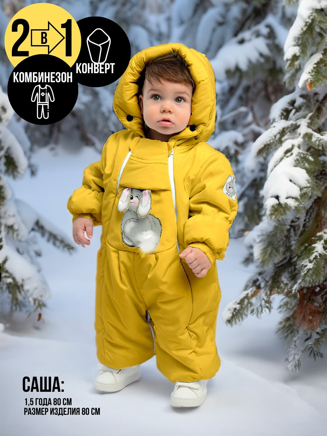Комбинезон-конверт "трансформер", Зима, Желтый арт.147шм (80 см) информация: