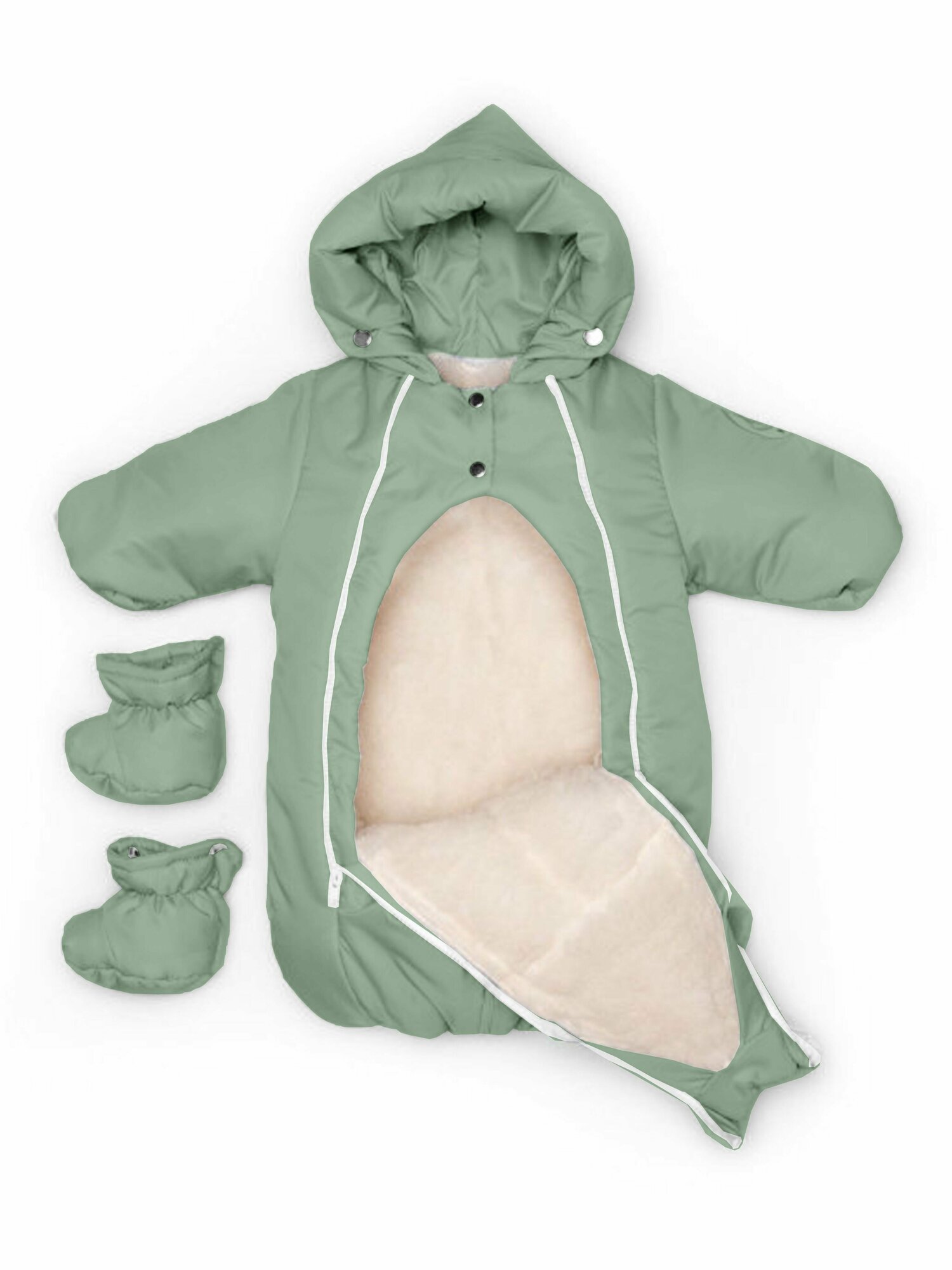 Комбинезон для новорожденных детский трансформер, зимний, подклад с содержанием шерсти отстёгивается, Светло-бежевый арт. 147шм