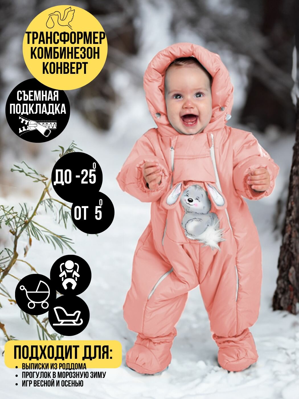 Комбинезон-конверт "трансформер", Зима, подклад с содержанием шерсти отстёгивается, Коралловый арт. 147шм (62 см)