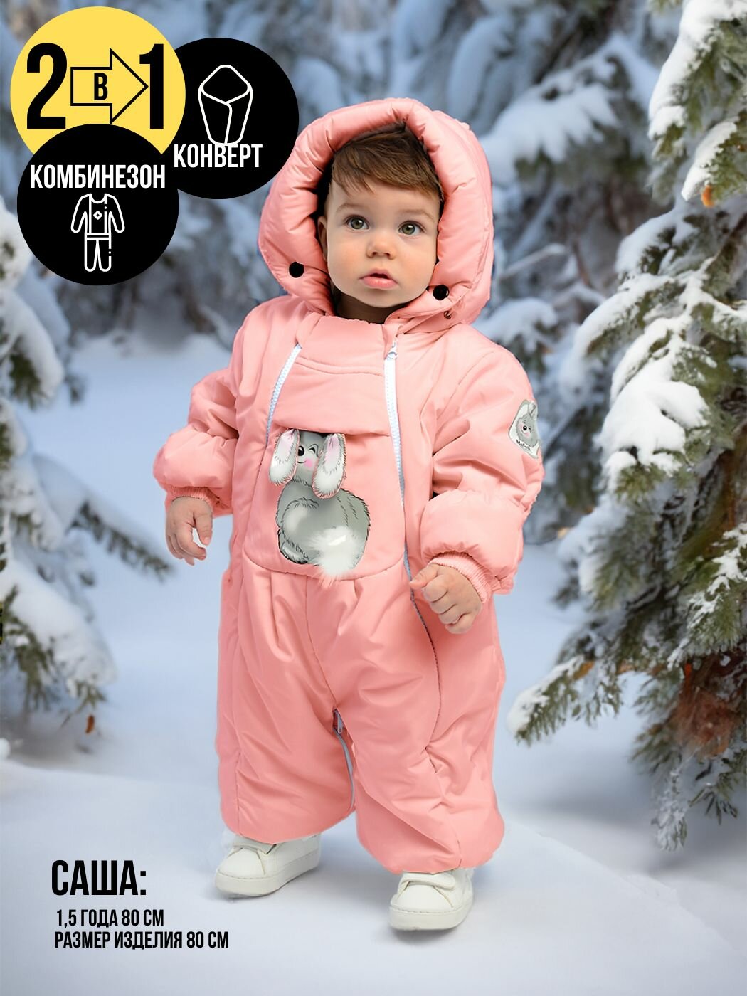 Комбинезон-конверт "трансформер", Зима, подклад с содержанием шерсти отстёгивается, Коралловый арт. 147шм (80 см)