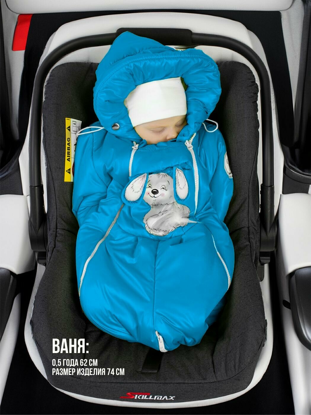 Комбинезон трансформер детский для новорожденных зимний. 147шм Голубой 74см