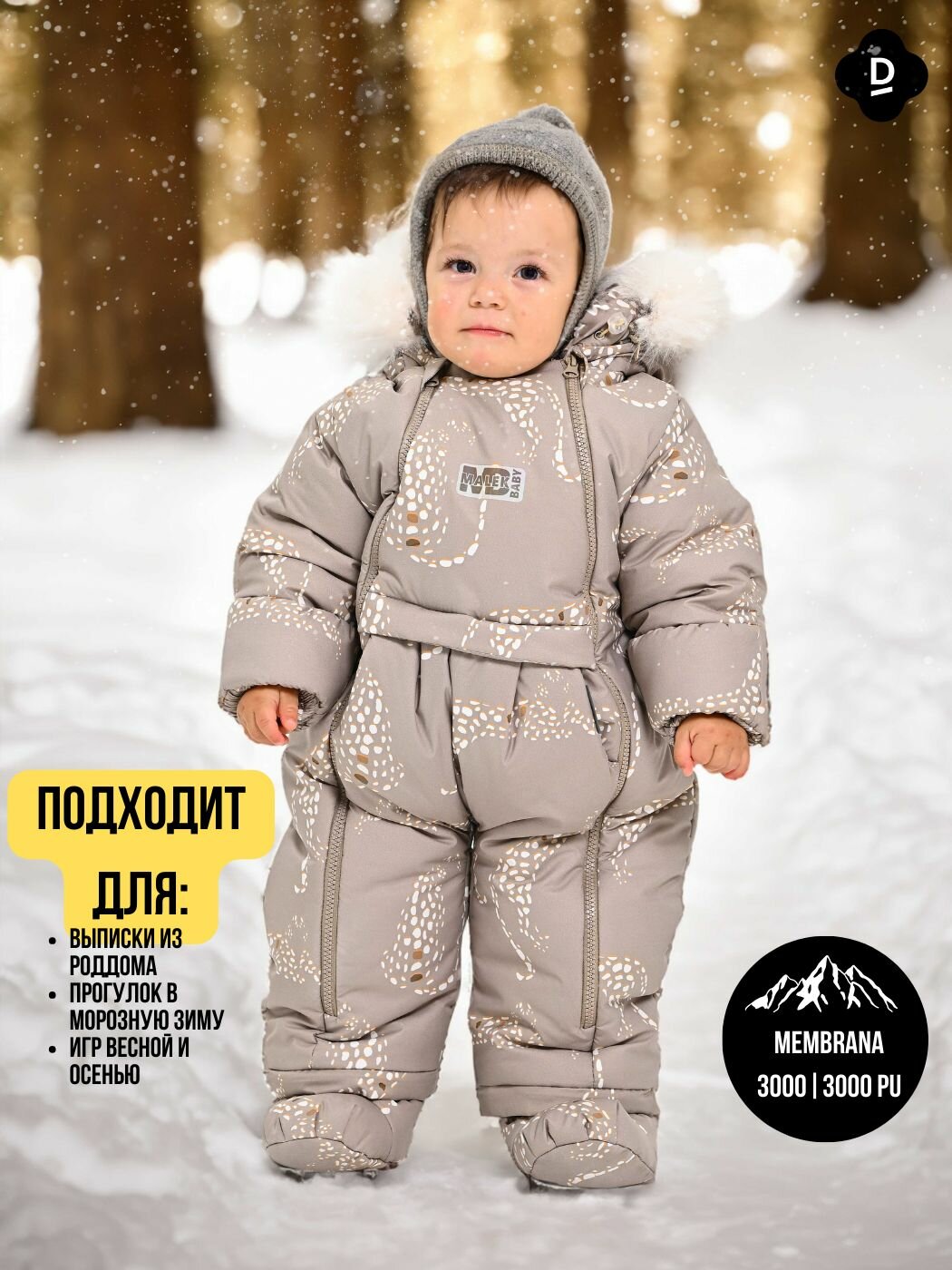 | Особенности модели | ветрозащита, капюшон, манжеты, мембрана, пинетки в комплекте, подкладка, съемный капюшон, съемный мех |